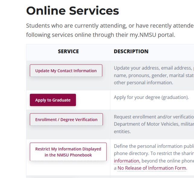 All undergraduate students must submit their degree or certificate applications online through your myNMSU account.